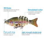 - Features an incredible life-like design and mobile mode in the water. Its 3D eyes help make the lure look more realistic to help it match its realistic pattern. It also features a small stainless steel bell built into the head of the lure that makes a subtle sound for an extra touch of pain. All in all. this helps the fish make impulsive strikes without thinking twice.