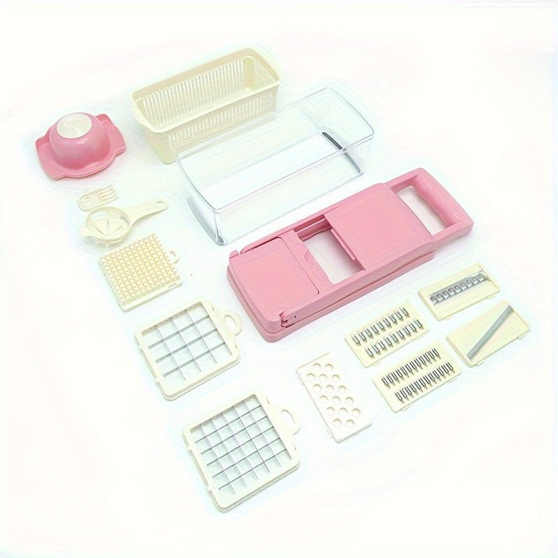 14pcsu002FSet. Vegetable Chopper. Multifunctional Fruit Slicer. Manual Food Grater. Vegetable Slicer. Cutter With Container. Onion Mincer Chopper With Multiple Interchangeable Blades. Household Potato Shredder. Kitchen Stuff. Kitchen Gadgets
