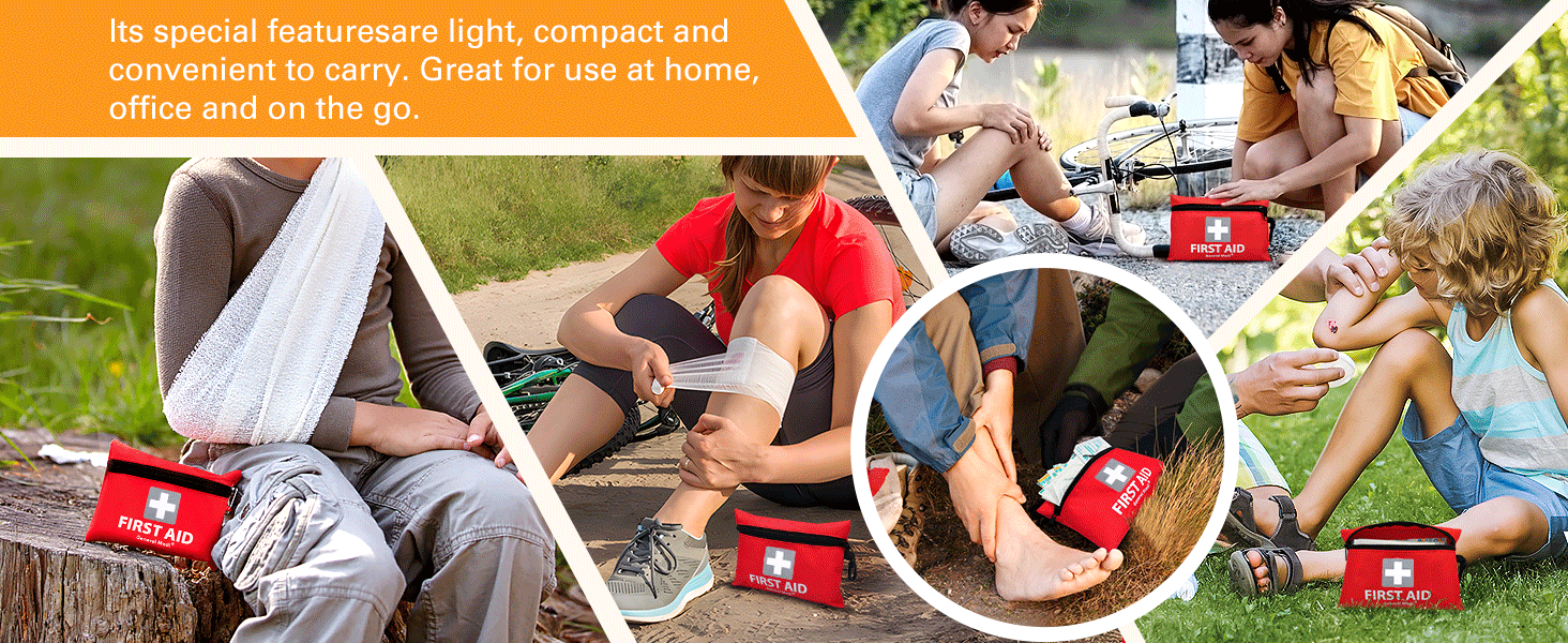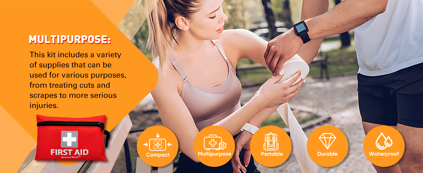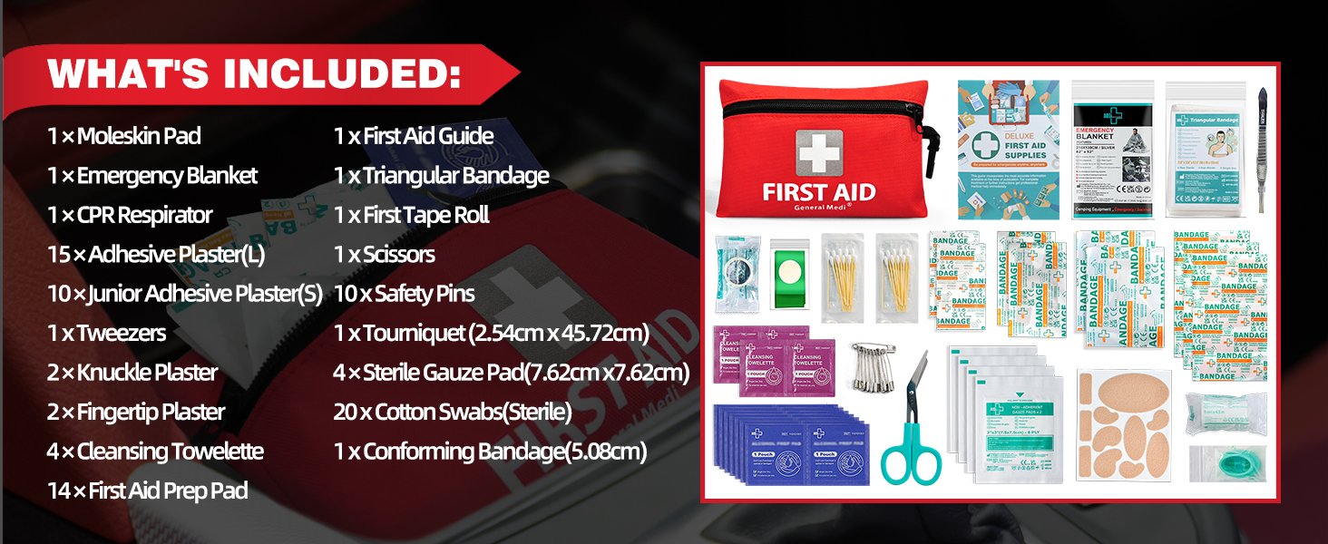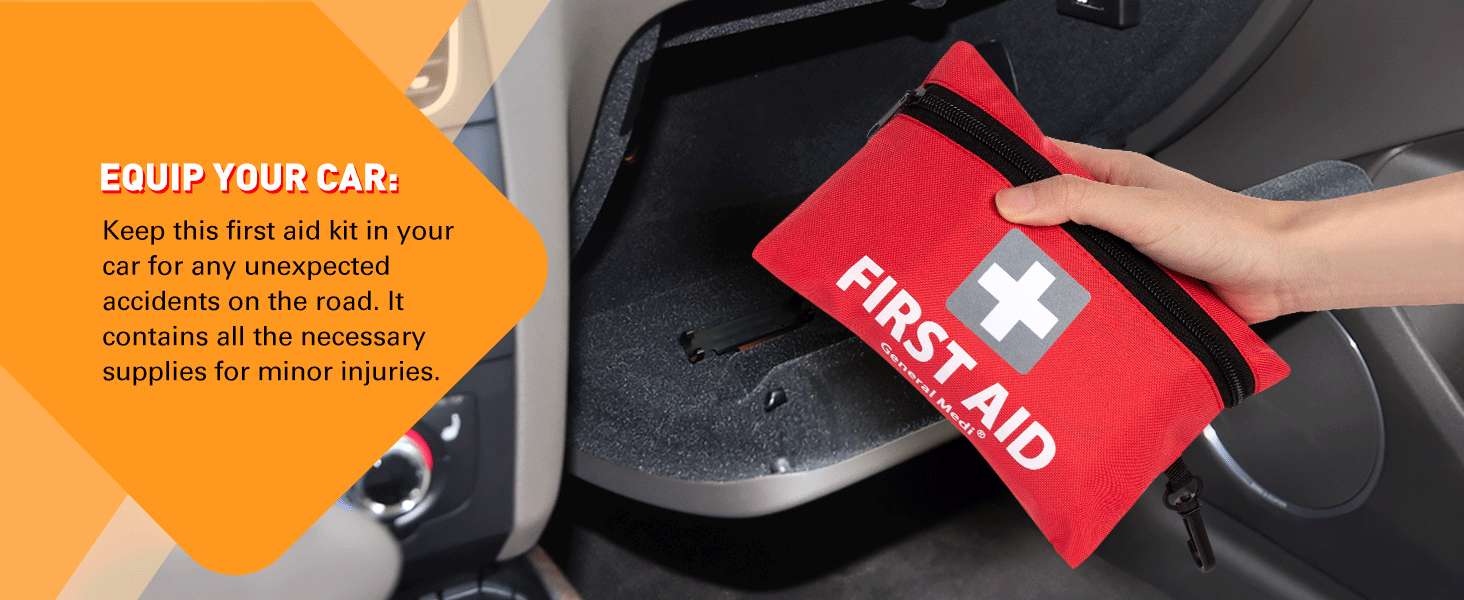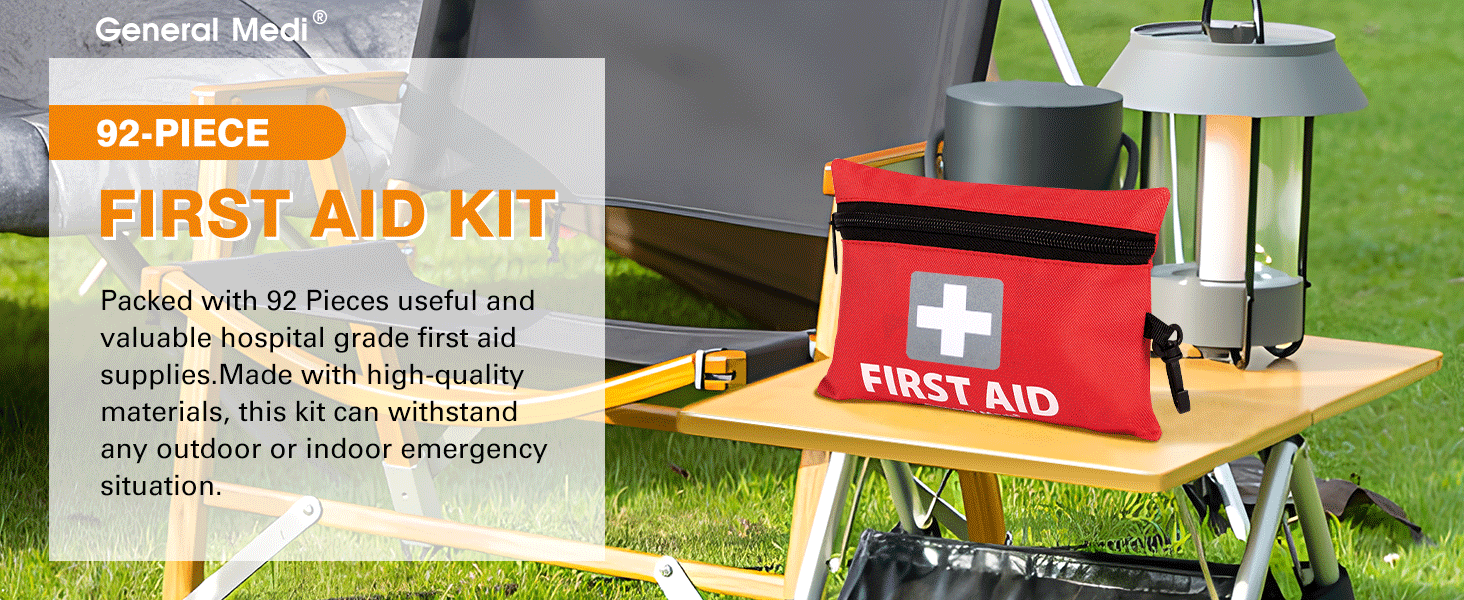 General Medi Mini First Aid Kit, 92 Pieces Small First Aid Kit - Includes Emergency Foil Blanket, Scissors for Travel, Home, Office, Vehicle, Camping, Workplace & Outdoor (Red)