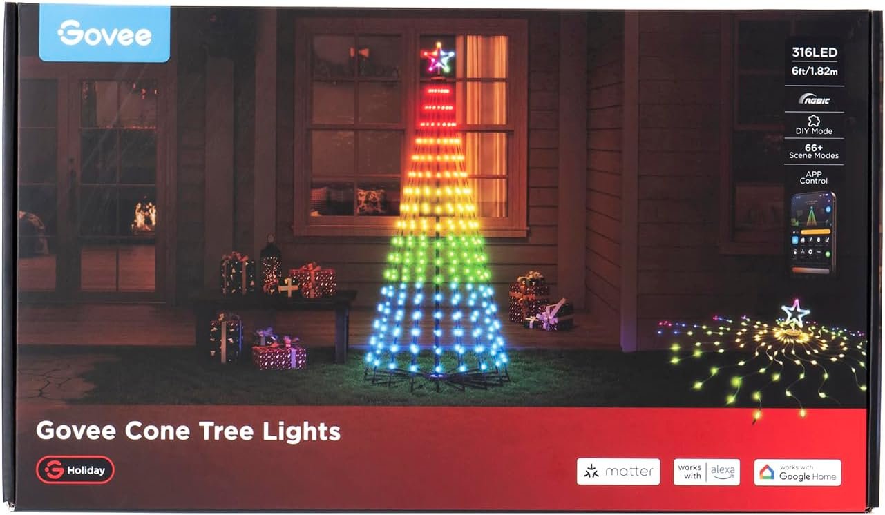 Govee Christmas Cone Tree Lights, 1.82m 316 LEDs RGBIC String Lights with Smart App Control, 82+ Scene Modes, IP67 Waterproof Holiday Decor for Halloween & Christmas, Music Sync,[Energy Class G]