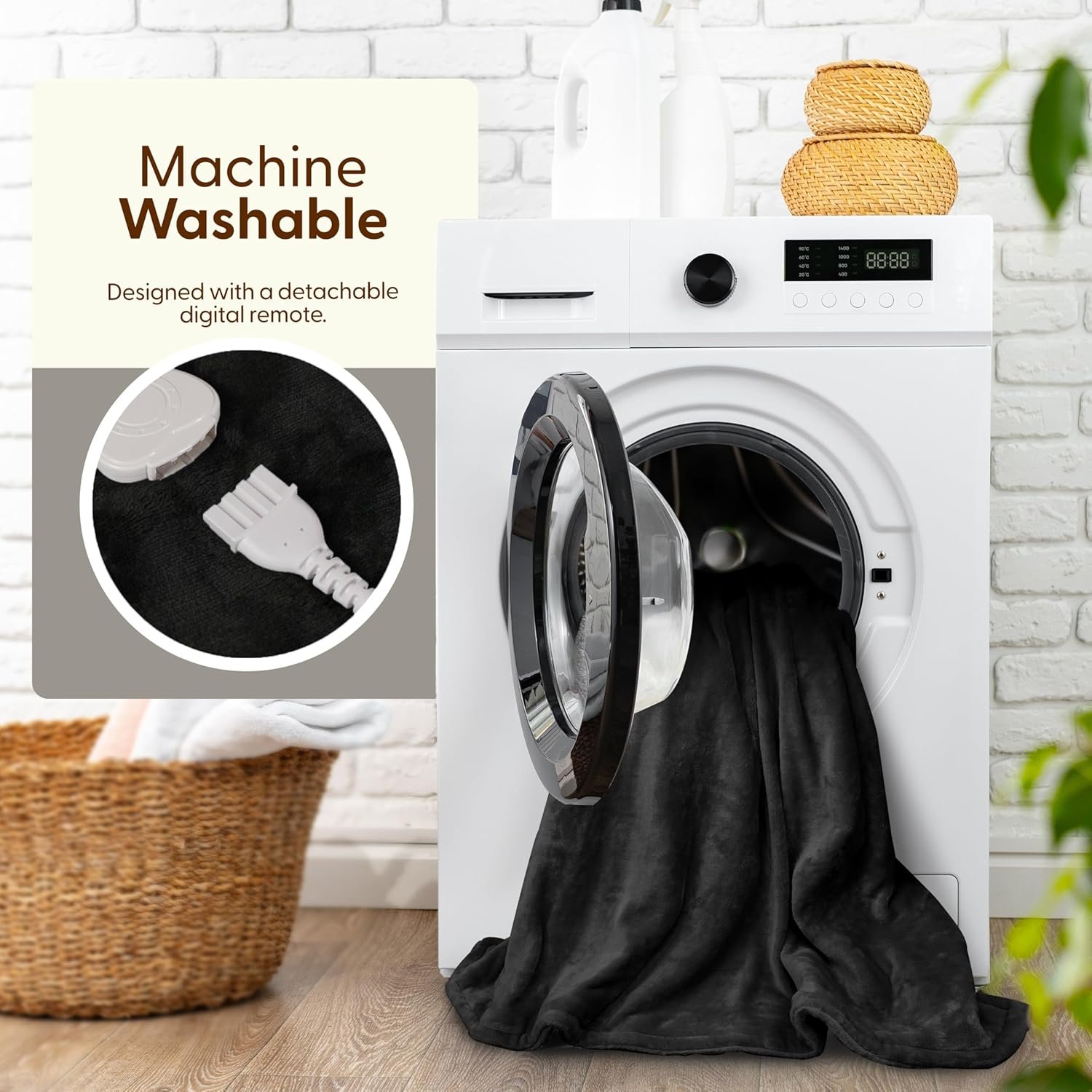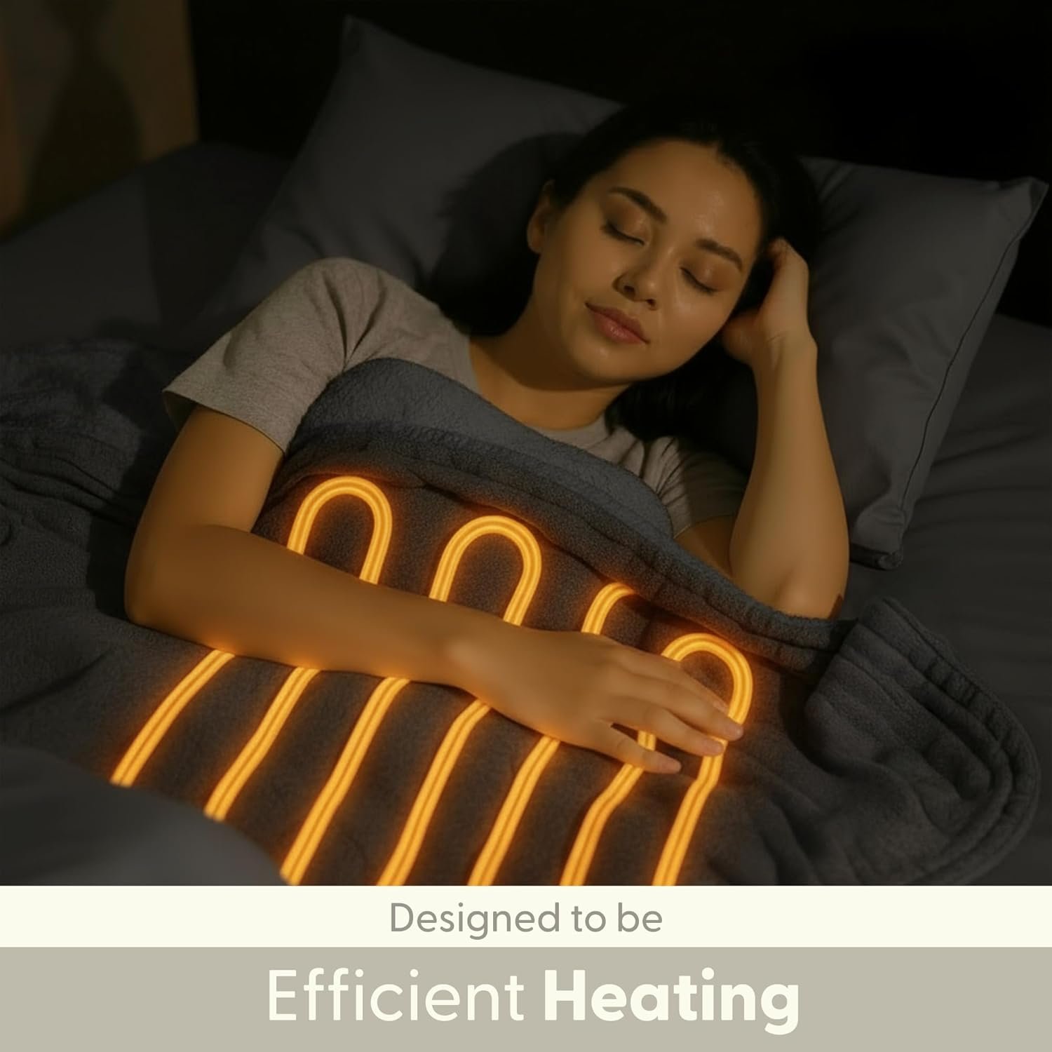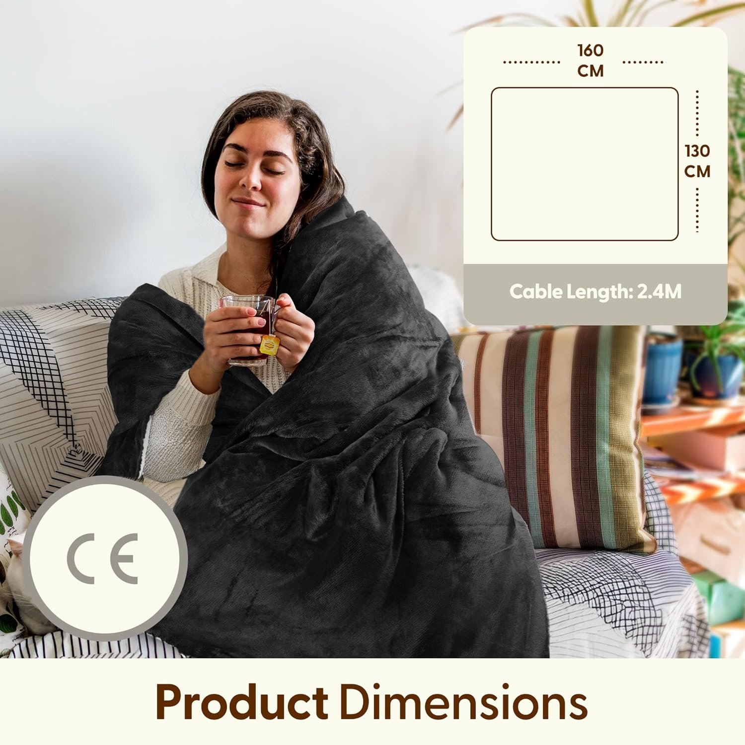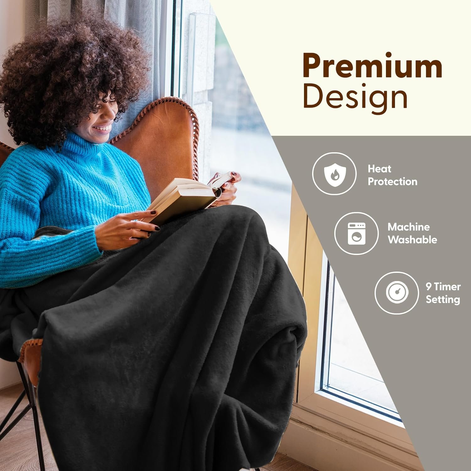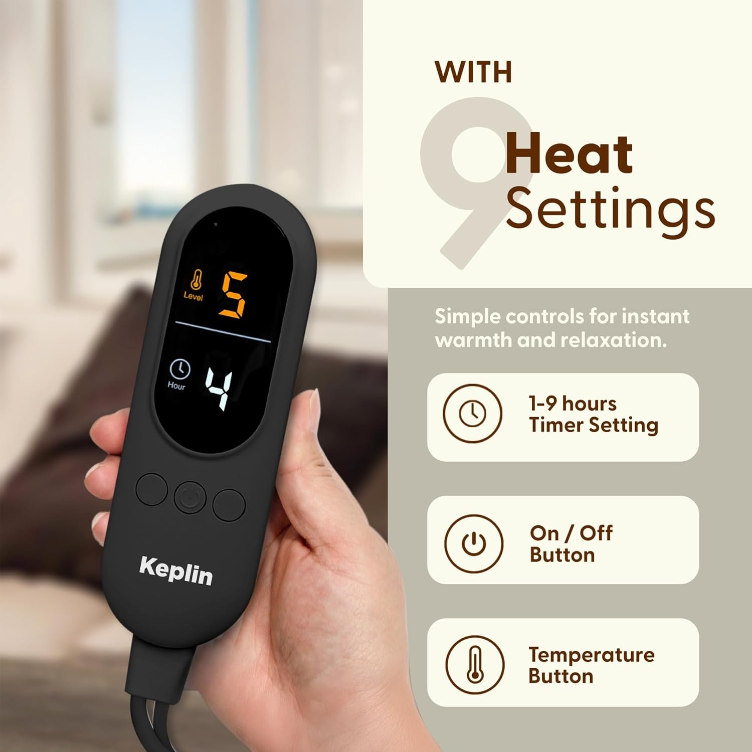 KEPLIN Large Electric Heated Throw Blanket – Electric Heated Blanket Throw for Bedspread 9 Heat Settings & Timer, Machine Washable Fleece Wool Duvet with 1 Year Warranty
