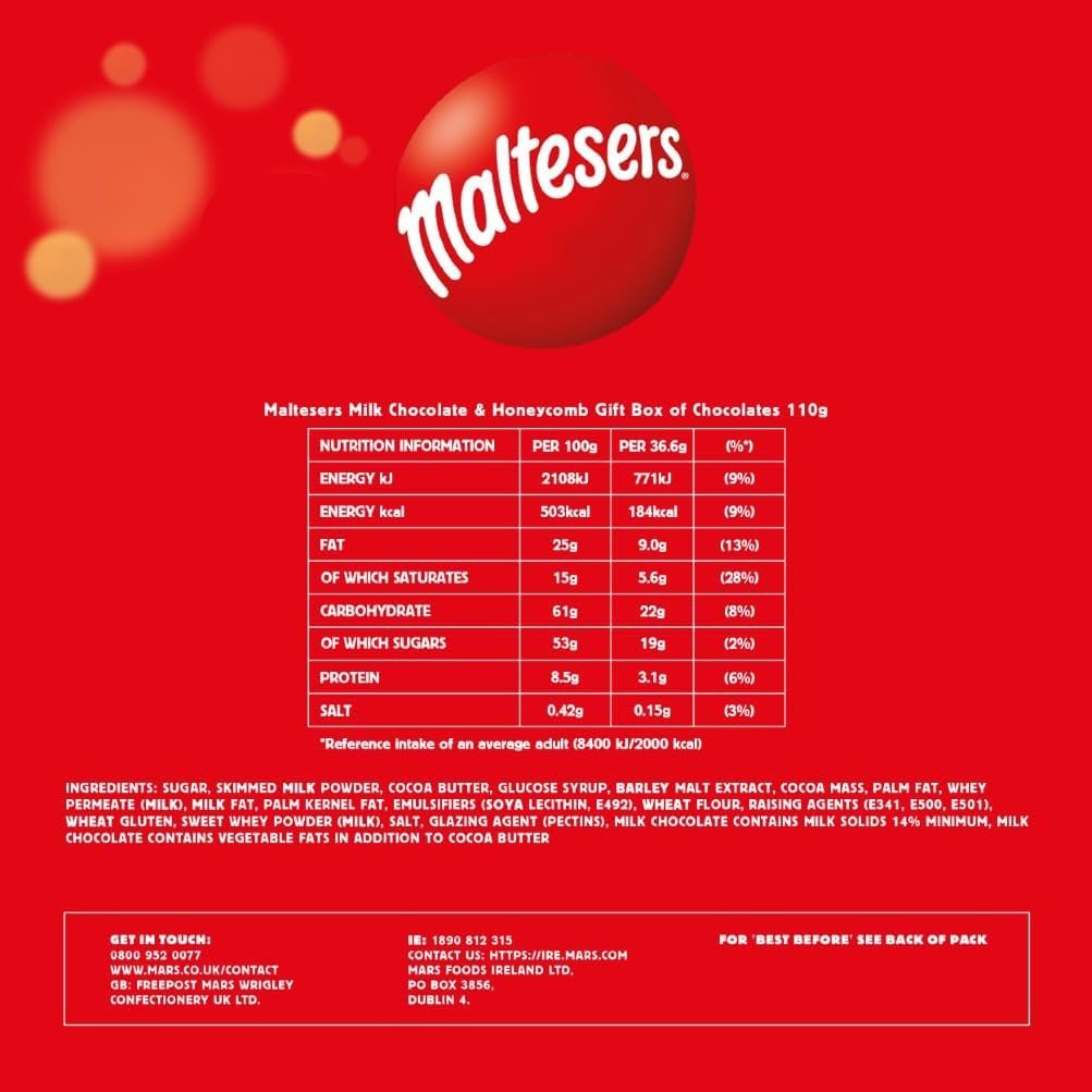 Maltesers Chocolate Gift Box, Milk Chocolate & Honeycomb, 110g, Ideal for Gift, Snacks and Sharing(pack of 4)