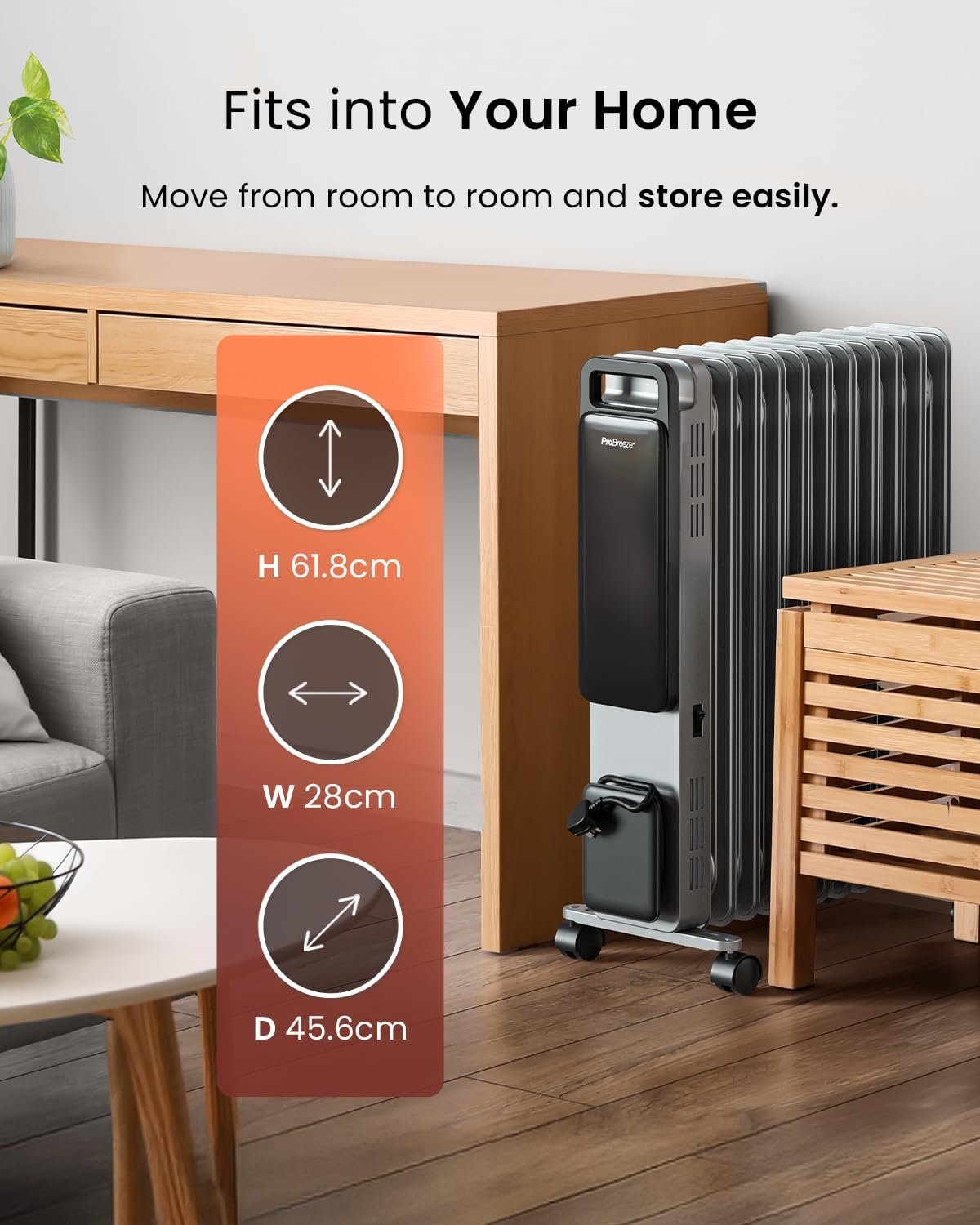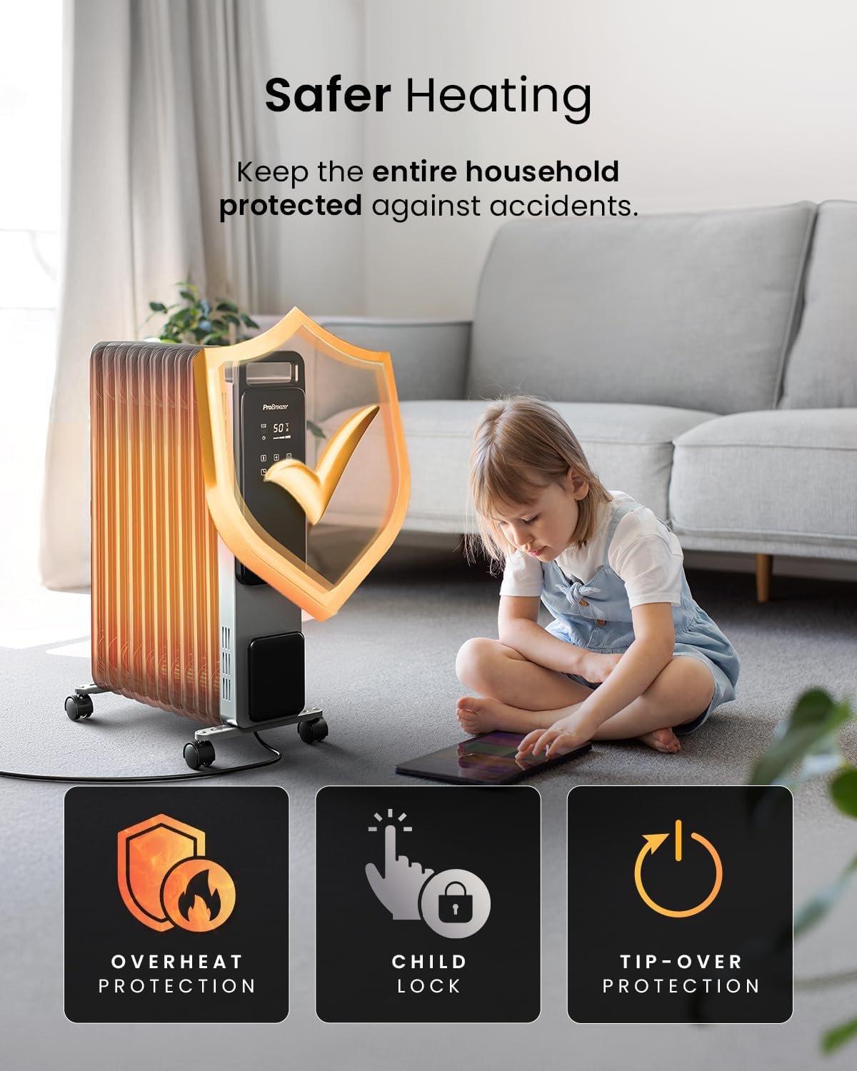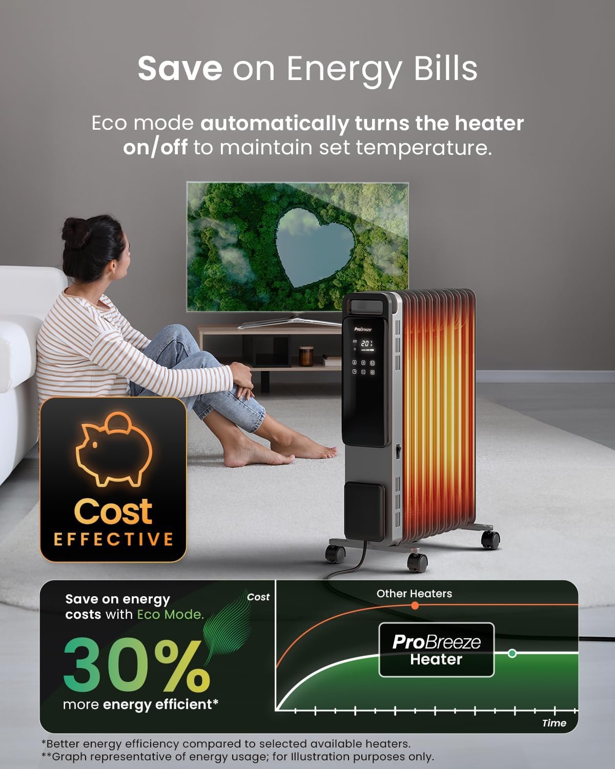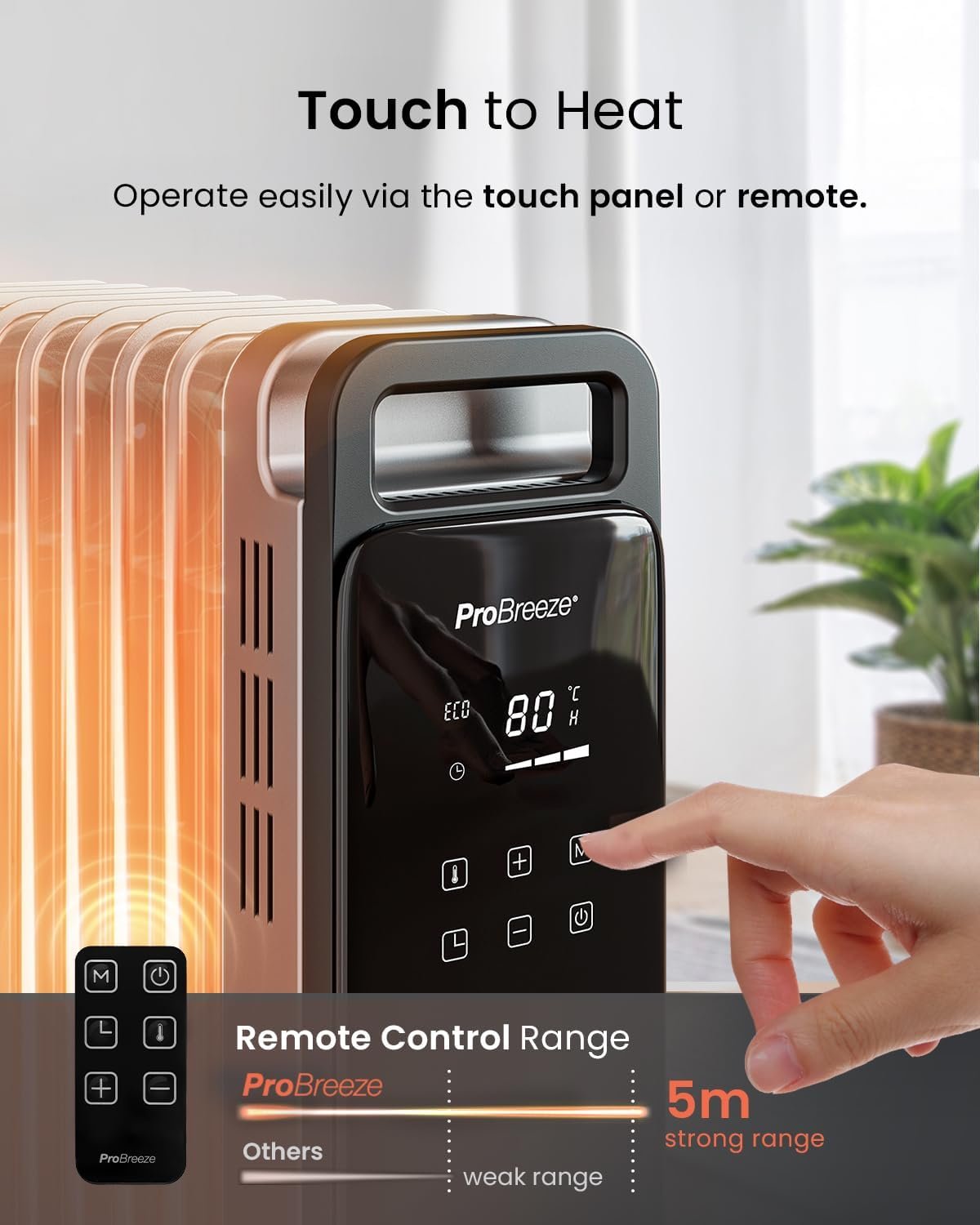 Pro Breeze Smart 2500W 11 Fin Oil Filled Radiator with Digital Display and WiFi Smart App, Thermostat, 24Hr Timer, 3 Heat Modes, Child Lock, Overheat & Tip-Over Protection Oil heater for Home – Silver