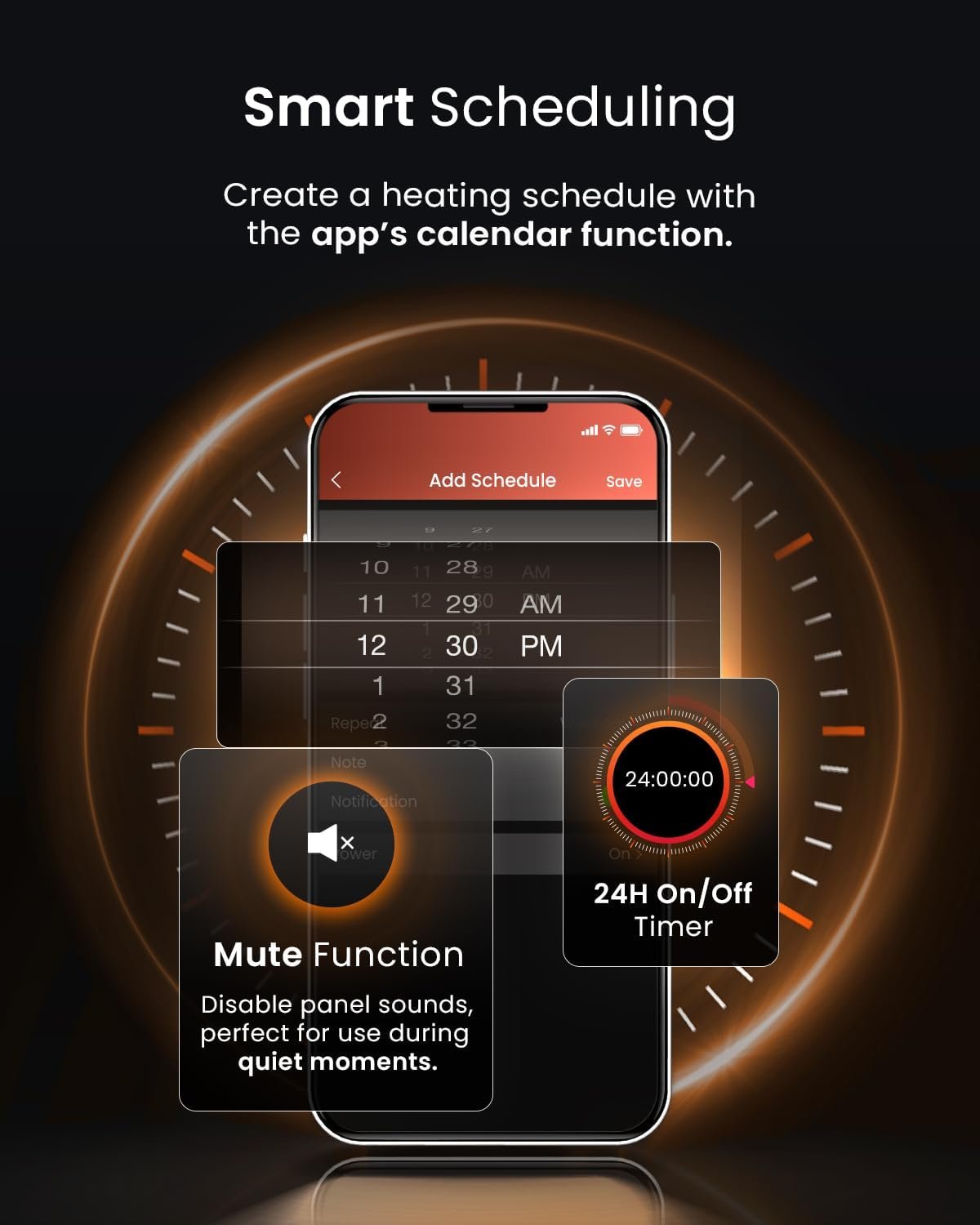 Heats up quickly and warms my living room in minutes. Super quiet, and the app control is incredibly convenient!