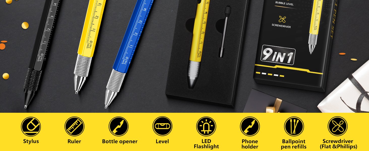 Stocking Fillers, Gifts for Men, Stocking Fillers for Men, 9 in 1 Multi Tool Pen, Secret Santa Gifts for Mens, Christmas Gifts for Him, Birthday Gift Gadgets for Dad